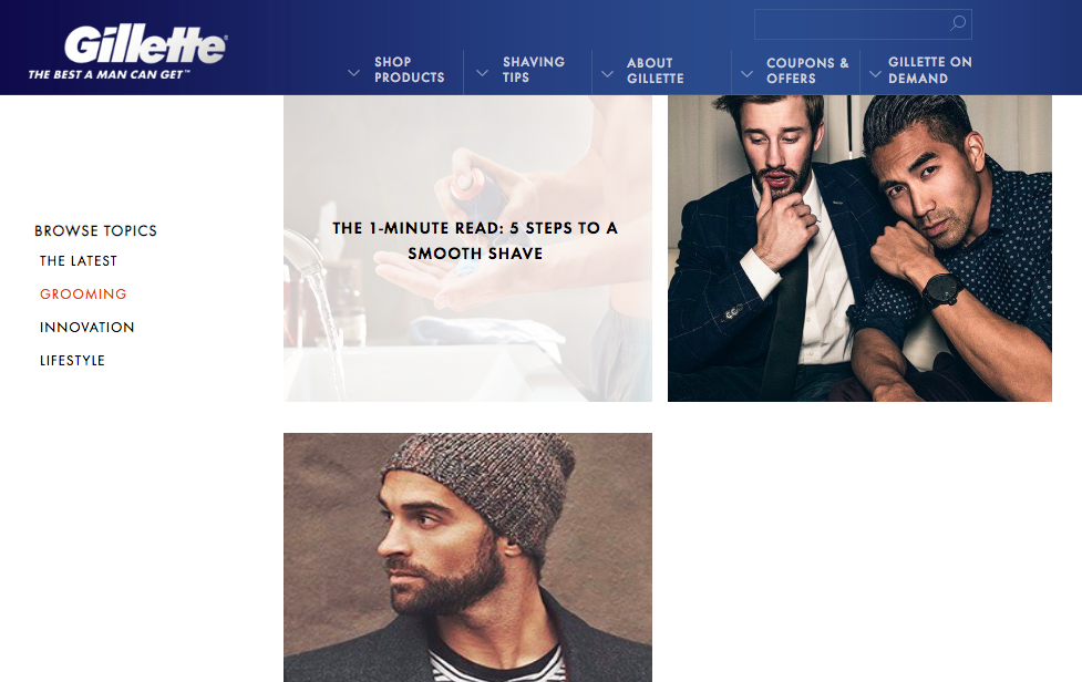 The best example that comes to mind is Gillette’s transition from promoting its razors via local newspaper inserts on weekends to a convincing lifestyle blog that gives tips about shaving.