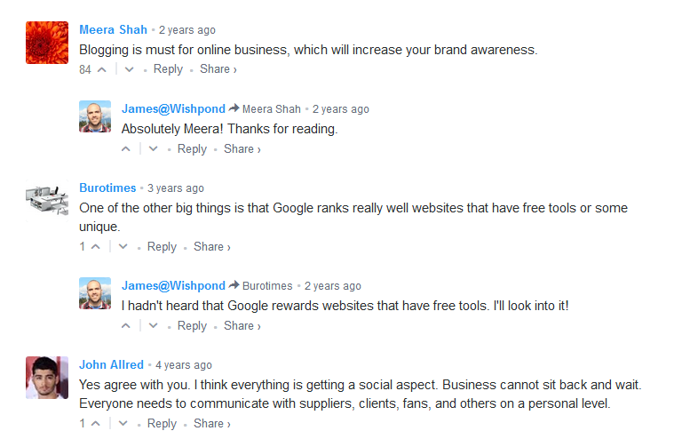 This creates the potential for viral traffic and exponential market growth. With so many different sharing platforms available, visitors can share the direct link to the blog, tweet it, or email it to a friend. This is the epitome of free marketing.