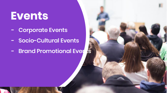 Whether you are planning an awards ceremony, conference, company fun day, themed gala dinner, launch event, team-building or a recognition event, we create and deliver projects of all shapes and sizes that are designed to engage your audience through live experiences.
